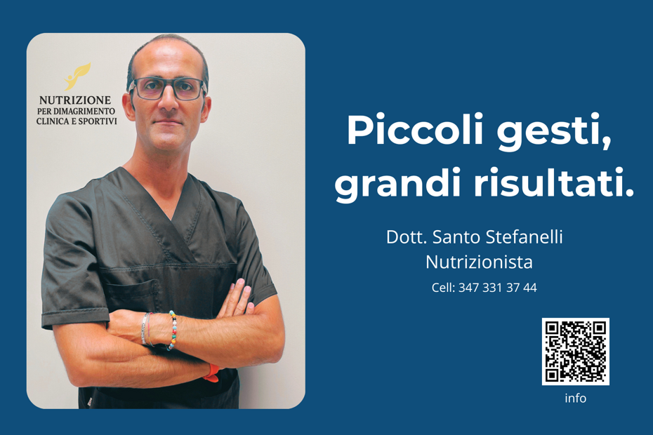 Il Dott. Santo Stefanelli offre consulenze nutrizionali personalizzate, piani alimentari mirati e risorse educative per aiutarti a raggiungere i tuoi obiettivi di benessere.